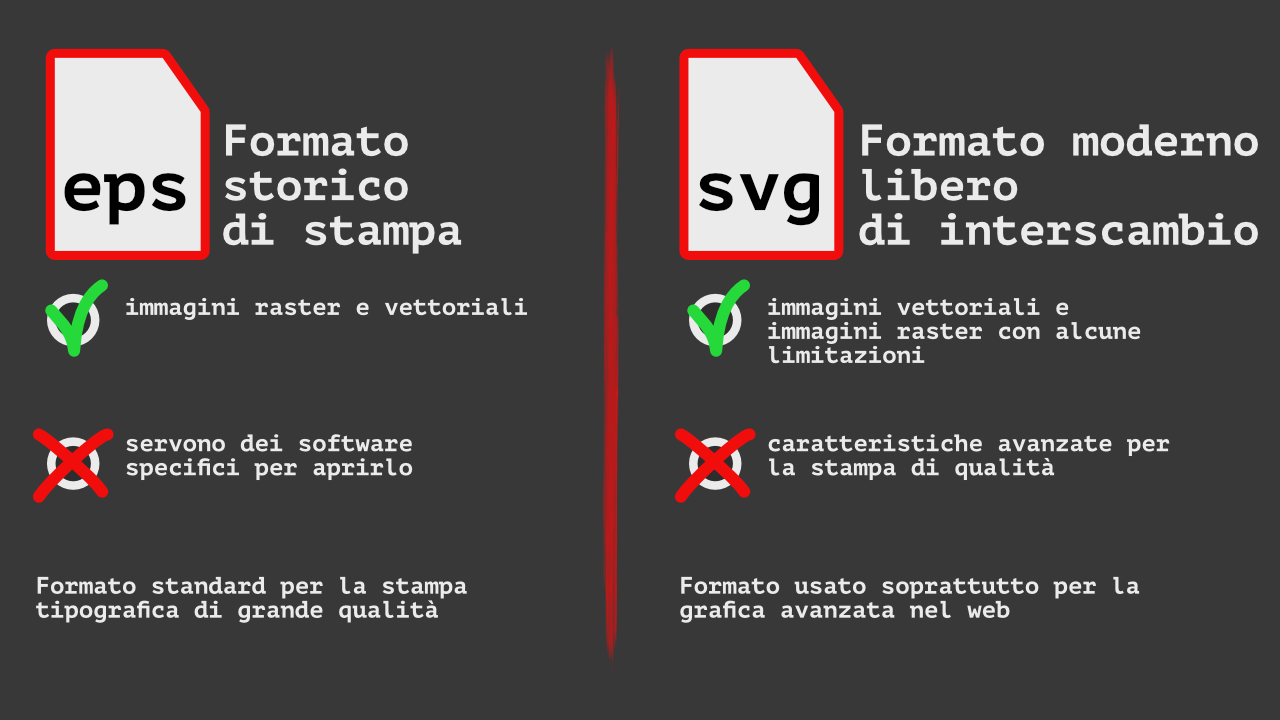 Tutto il mondo della stampa professionale è standardizzato sul formato .eps mentre per la gestione della grafica vettoriale e vettoriale-raster più snella e per internet si sta sviluppando molto il formato .svg (più leggero, aperto e di interscambio).