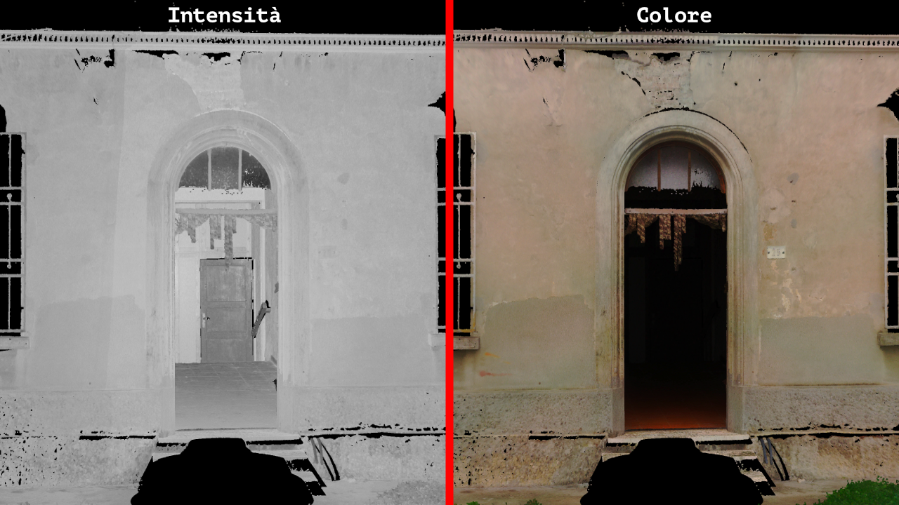Tutti i laser scanner registrano di base la potenza luminosa di ritorno del laser “colorando” la nuvola di grigi che rappresentano l’intensità luminosa di risposta del punto misurato. Per poter colorare le scansioni tutti i laser scanner devono usare delle normali foto, generalmente scattate direttamente dallo scanner come dato aggiuntivo.