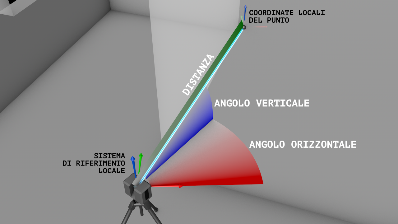 Tutti i laserscanner registrano, per ogni punto campionato, angolo orizzontale, angolo verticale e distanza.